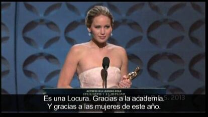 Jennifer Lawrence se ha llevado el premio a Mejor actriz por su actuación en El lado bueno de las cosas. Era la favorita y no ha sido una sorpresa. Su discurso ha sido como toda la ceremonia, correcto, sin sorpresas. Pero el momento que más ha gustado ha sido cuando al subir al escenario a recoger el galardón la actriz ha tropezado e inmediatamente Hugh Jackman, sentado en la primera fila, ha saltado como un resorte para ayudarla. "Todos os levantáis porque os sentís mal porque me he caído", ha dicho Lawrence cuando gran parte del auditorio la ha ovacionado levantándose, una vez más, de sus asientos. Al retirarse del escenario, la joven actriz le ha lanzado una mirada cómplice al actor australiano.