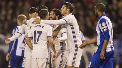 “Es que es la verdad”, dijo Isco a los micrófonos de Movistar cuando le preguntaron qué le parecía que los periodistas hablaran de “segundas líneas” para referirse a Asensio, Morata, Lucas, James, Kovacic y a él. “Es la grandeza del Madrid, somos 23 titulares y es la mejor plantilla del mundo”, comentó el malagueño que alcanzó los diez goles en Liga, es el tercer máximo anotador del equipo. Un botín enorme para ser una segunda línea. El público de Riazor le ovacionó cuando fue sustituido en la segunda parte.