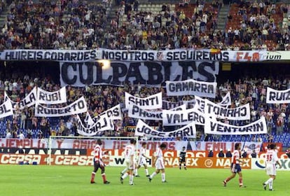 La afición del Atlético, una de las más cálidas de España, maquinó un infierno y en él arrojó a sus propios jugadores, el sábado pasado, en el partido contra el Sevilla. El Atlético se despedía de Primera División en el estadio Vicente Calderón y sus seguidores no estuvieron dispuestos a perdonar a nadie lo que consideraron una afrenta. Responsabilizaron a los propietarios, la familia Gil, al entrenador al que siempre aclamaron como a su héroe, Radomir Antic, al secretario técnico, Miguel Ángel Ruiz, al que fuera administrador judicial Luis Manuel Rubí... y a los jugadores. Sobre todo a los jugadores. De esa tunda de insultos sólo se libraron el canterano Luque, Aguilera, Kiko, Baraja, Toni Muñoz y Molina. Para el resto hubo una humillación multitudinaria y el más perjudicado fue Valerón, insultado por miles de voces al unísono, en cánticos y pitidos. Para proteger al jugador, Antic lo mandó a la ducha en el descanso.Valerón anunció ya que no piensa renegociar su contrato con el Atlético para jugar en Segunda. Que si se queda, exigirá la misma cantidad que cobra por jugar en Primera. El gesto anuncia que su marcha es inminente y después del insulto masivo de que fue objeto ayer no le quedarán demasiadas alternativas. Probablemente fichará por el Valencia, donde lo sitúan en su entorno familiar debido al aprecio profesional que por él siente el técnico valencianista, Héctor Cúper, que ya le dirigió en el Mallorca durante la temporada pasada, cuando Valerón se reveló como un media punta notable.