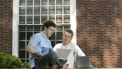 Compartir habitación en un colegio mayor durante los años universitarios puede ser un infierno o una bendición, dependiendo de la persona que duerma en la cama de al lado. Otras veces puede resultar una infrecuente vía de enriquecimiento desmesurado. En Harvard, Chris Hughes acabó en el mismo cuarto que Mark Zuckerberg (ambos, en la imagen inferior, fotografiados en Harvard en 2004), y ahora tiene una fortuna que se estima en 700 millones de dólares. Prometido al inversor Sean Eldridge, se ha hecho con el control de una respetable revista, ‘The New Republic’, y ha hecho suya, entre otras, la causa de avanzar los derechos de los homosexuales. Hughes, de 28 años, fue el primer portavoz de Facebook, pero abandonó la empresa en 2007, centrado en acabar sus estudios de letras. Desde temprano en su carrera mostró interés en la política, y en 2008 participó en la campaña electoral de Barack Obama, en el apartado de organización social a través de la Red. Un año después se mudó a Nueva York, donde fundó Jumo, una red social para trabajadores en el sector de las organizaciones no gubernamentales. Fue un fracaso, que llevó finalmente a Hughes a interesarse por los medios de comunicación y a comprar la mayoría de participaciones de ‘The New Republic’. En este camino, más en la sombra que el de otros cofundadores de Facebook y sus peleas, Hughes ha encontrado el amor. Conoció a Eldridge, que ahora tiene 25 años, en Harvard, a través de un amigo. Su primera cita tuvo lugar en noviembre de 2005. Pronto eran pareja. Mientras Hughes avanzaba en el mundo de las redes sociales y los medios, Eldridge se licenció en filosofía por Brown e hizo sus primeras incursiones en el mundo de las comunicaciones y la política, defendiendo la causa de las uniones entre personas del mismo sexo. El diaro ‘The New York Times’ ha llamado a la pareja “los Brangelina del combinado de la política y los nuevos medios”. Los enamorados tienen un ‘loft’ de 350 metros cuadrados en el Soho neoyorquino que les costó cinco millones de dólares en 2010. Al año siguiente, compraron una casa de campo de 32 hectáreas en Garrison, a 80 kilómetros de Manhattan, por otros cinco millones. Son muy dados a organizar eventos sociales y recaudaciones de fondos para políticos progresistas. Por su hogar han pasado, entre muchos otros, la expresidenta de la Cámara de Representantes Nancy Pelosi, el gobernador de Nueva York, Andrew Cuomo, y la senadora por el mismo Estado Kristen Gillibrand. En julio de 2011, Nueva York legalizó las uniones homosexuales. Ahora, los prometidos podrán casarse en el Estado en el que residen.