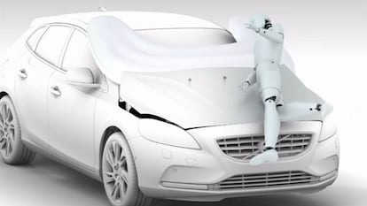 Cuando es imposible evitar una colisión con un peatón, sí se puede, al menos, suavizar las consecuencias del impacto. Este es el objetivo que se marcó Volvo para crear su nuevo modelo, el V-40, el primer coche del mundo que incorpora un airbag para peatones. “En Europa, el 14% de las víctimas mortales en accidente de tráfico son peatones atropellados”, recuerda Germán López Madrid, presidente de la compañía en España. El nuevo modelo estará a la venta entre julio y agosto de este año.