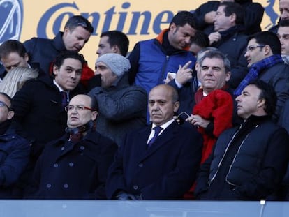 First team and youth players, coaches, staff, family members and former players were on hand to offer Del Nido support, while around 200 fans outside the stadium shouted insults and displayed a giant banner reading: “Corruption, get out of Sevilla.”