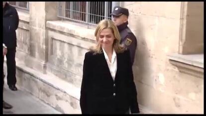 Earlier, a smiling Cristina arrived at the Palma de Mallorca courthouse for her testimony. She nodded and acknowledged a barrage of photographers kept behind a rail by police as she stepped out from the back seat of a dark Ford sedan that brought her to the back entrance of the courthouse.