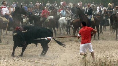 But isn’t the Toro de la Vega also a lynching? “No,” said Abril. “It is a ritual for people who love nature and it is forbidden to stab [the bull] with several spears at the same time. We would like [the death] to come with the first stab, but as the bull has very tough skin you have to hit it hard for the spear to penetrate.”