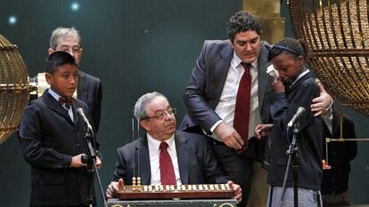 There was emotion along the way as Maguette, one of the pupils from Madrid’s San Ildefonso school that each year supplies the 11 boys and 11 girls who sing out the winning numbers, broke down in tears after stumbling over her recital of the number 58052, one of the many winners of the smaller €1,000 prizes.