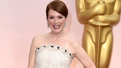 La alfombra roja es, además, el escaparate donde las grandes casas gustan de hacer alarde de sus capacidad artesanal. Y esta edición quedó más claro que nunca. A un lado del ring, un vestido de Calvin Klein compuesto por 6.000 perlas para Lupita Nyong'o. Al otro, Chanel y las 80.000 lentejuelas de la pieza de alta costura que lució Julianne Moore. Ya sea porque obligar a una mujer a pasarse tres horas sentada sobre pequeñas bolitas resulta turbador o porque Moore es capaz de defender con seguridad cualquier prenda por muy compleja que sea, no hubo lugar para la discusión. El ganador del combate fue Karl Lagerfeld.