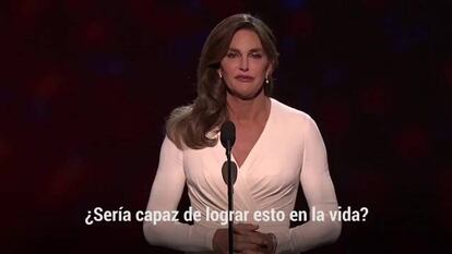 Jenner le recordó al público, entre los que había jugadores de fútbol, baloncesto, béisbol y hockey, que ellos eran modelos a seguir y que tuvieran presente que las cosas que hacen o dicen son "absorbidas y observadas por millones de personas, especialmente jóvenes". "Mi petición para ustedes esta noche es que se unan a mí para hacer de éste uno de sus temas también… Prometo hacer todo lo que pueda para transformar la forma en que se percibe y trata a los transexuales”, añadió.