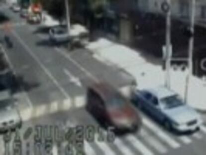 A surveillance camera captured the moments when three of the reported suspects left the apartment building in Mexico City’s Narvarte neighborhood at around 3pm. In the grainy video, one of the men can be seen wheeling a suitcase – reportedly with items taken from the ransacked apartment – while two others get into a Ford Mustang owned by the Colombian woman before speeding away.