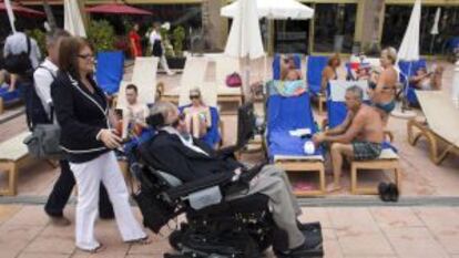 A woman in a bathing suit approaches Hawking, saying: “Thanks for your sense of humor, Stephen.” This happens all the time, says one of his team: “His books about astrophysics and his work have made him popular around the world.” He is accompanied by seven people on the trip, among them doctors and close friends. Hawking agrees to answer EL PAÍS’s questions, and discusses the need to conquer space if humanity is to survive, as well as the dangers that artificial intelligence poses, and the future for science in Spain.