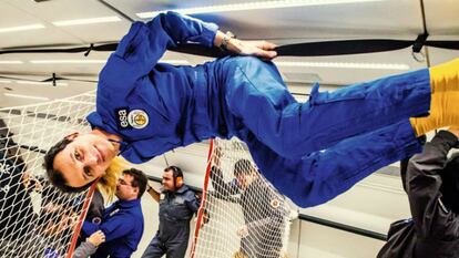 Apenas un millar de personas al año tiene la fortuna de experimentar la ausencia de gravedad en los vuelos parabólicos que efectúan una compañía estadounidense (Zero G), una rusa (Star City Tours) y una europea, Novespace. Esta subsidiaria de CNES, la Agencia Espacial francesa, lleva realizando vuelos científicos en ingravidez desde 1989; entrena astronautas para sus vuelos al espacio, prueba el efecto de la ausencia de gravedad en el cuerpo humano, mejora la efectividad de diferentes tipos de motores… Pero, aquí en la Tierra, vivimos felizmente pegados al suelo, y la ausencia de gravedad es extraordinariamente compleja de conseguir: se necesita un avión preparado para ello, que debe hacer una serie de maniobras que le provocan un enorme desgaste, y se precisa del trabajo de tres pilotos especializados en la maniobra parabólica que creará, durante solo unos segundos, la burbuja de la ingravidez. De ahí que Novespace se planteara, en los años noventa, comenzar a vender vuelos para turistas interesados en experimentar la gravedad cero, y financiar así sus experimentos científicos. Consiguió todos los permisos para realizarlo en 2013 y, hasta el momento, han efectuado 11 vuelos en los que han flotado 450 personas.