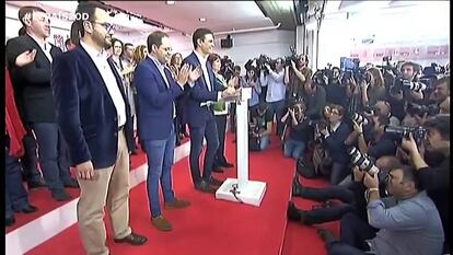 En una comparecencia en la sede del PSOE en la calle de Ferraz, Pedro Sánchez ha felicitado al PP por ganar las elecciones. "Corresponde al Partido Popular intentar formar Gobierno". De su partido, ha afirmado: "Hemos hecho historia, hemos hecho presente y el futuro es nuestro".