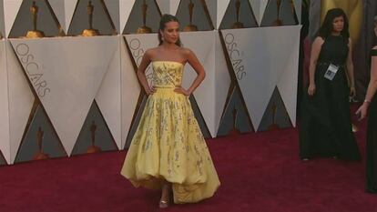 Alicia Vikander (Gotemburgo, 1988) solo puede pensar en una cosa: bailar. Celebrar su victoria bailando, dejarse mecer por ese momento de felicidad que le da el Oscar que acuna en sus brazos. "Espero que me den un respiro para salir, juntarme con los míos, tomarme una copa de vino y bailar", aseguraba henchida de felicidad la noche del pasado domingo, sin asimilar lo que le acaba de ocurrir. Se encontró secuestrada junto al resto de los galardonados en las traseras del teatro Dolby: fotos, entrevistas, Instagram, la green room... en un momento en el que solo quería desmelenarse con ese modelo amarillo de Louis Vuitton que lució en la ceremonia. "Es más corto por delante, así puedo dar saltos de alegría", añadió con los pies en la tierra y las manos en ese Oscar a la mejor actriz de reparto que acababa de recibir por La chica danesa.