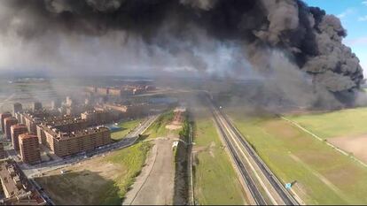 El incendio del cementerio de neumáticos de Seseña, a vista de dron