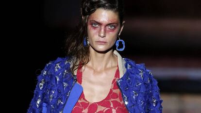Los modelos ya están vestidos y comienzan a salir una tras otra esperando su turno para pisar la pasarela. "¡Esta no es mi talla. Yo uso un 41!", grita una maniquí a la que no le valen los zapatos. Suena la música y comienza el desfile, pero los nervios no se han sosegado. "Te lo juegas todo en 10 ó 12 minutos. Eso es también lo bonito de la moda, el desfile es en directo y luego se acabó. La gente ya se ha enterado de lo que se lleva", asegura la diseñadora de la firma madrileña.