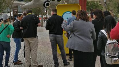 A la tercera va la vencida. Costó hacernos con un ejemplar de las deseadas gafas de Snapchat. Las Spectacles tienen una peculiar forma de venta, pensada para generar escasez y deseo. En el mercado de segunda mano superan los 500 dólares. En la máquina expendedora efímera, cada vez más aleatoria y caprichosa en su localización, cuestan 119 dólares más impuestos. En total el cobro de la tarjeta quedó en 140 dólares.