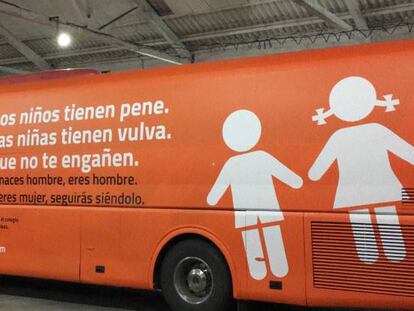 Acting on the orders of Madrid City Hall, the Spanish capital’s municipal police immobilized a bus late Tuesday chartered by a right-wing Catholic group plastered with the message: “Boys have penises, girls have vulvas. Don’t let them fool you. If you’re born a man, you’re a man. If you’re a woman, you will continue to be so.”