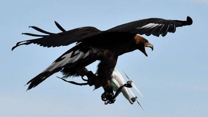 Antes se hicieron famosos los chimpancés de un zoológico holandés por atrapar usando palos uno de estos aparatos que estaba filmándolos. Allí, en los Países Bajos, parece estar tan extendida esta tecnología que su Policía ha desarrollado una estrategia para derribar los drones potencialmente peligrosos: han entrenado águilas para cazarlos, y lo hacen con una efectividad extraordinaria. El Ejército francés también las usa. Conociendo el instinto de las rapaces para atrapar drones, habrá que ver cómo se desarrolla la futura industria de los drones de reparto en una ciudad como Nueva York, con una de las mayores concentraciones de halcones peregrinos del mundo.