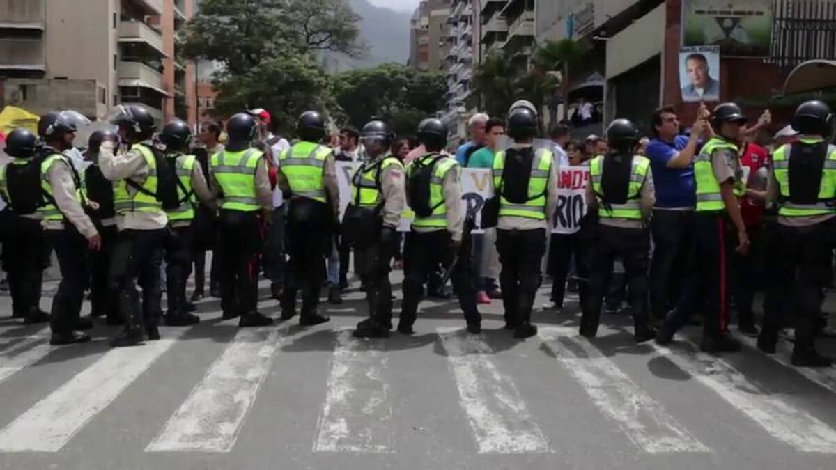 A un kilómetro de allí, en un tramo de la avenida Libertador, los opositores quedaron varados por el contundente despliegue policial. Maduro cumplía así su amenaza: permitió que sus adversarios se concentrasen pero no donde ellos querían ni como pretendían. Los agentes no dieron tregua a los manifestantes para que pudiesen avanzar. Allí estaba el secretario general de la Mesa de la Unidad Democrática (MUD), Jesús Chuo Torrealba; el presidente de la Asamblea Nacional, Henry Ramos Allup, y el propio Capriles. Pese a que su intención era alcanzar la sede del CNE, ni por asomo iban a conseguirlo de forma pacífica. Sí consiguieron que uno de los rectores del Consejo, afín a los críticos, recibiese un documento en el que la oposición denuncia la tardanza en la auditoría de firmas.