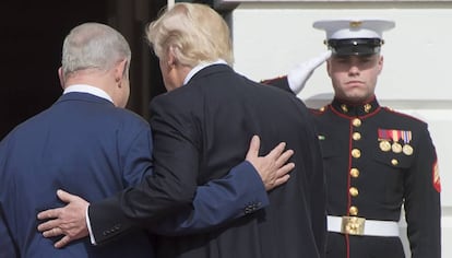 Pero el mensaje de Trump mostró además la tendencia de su Administración para inhibirse de imponer la paz. El mandatario republicano asumirá tanto la solución de los dos Estados como la de un solo Estado —sin puntualizar en este caso cuáles serían los derechos de los palestinos de Cisjordania y Jerusalén Este— “si esa es la voluntad de las partes”. Bendijo así la doctrina de Netanyahu de que la paz solo será posible mediante negociaciones directas. Ambos líderes aludieron sin embargo a un entendimiento global con los países árabes (suníes, obviamente) recelosos del auge de Irán como marco global para la paz en Tierra Santa. Trump pidió más flexibilidad a los israelíes, sin concretar sobre qué asuntos, para demostrar que quieren la paz, y a los palestinos les conminó a que “dejen de educarse en el odio”, en una reconvención que parece más moral que política.