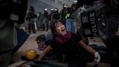 “Mira en lo que se han convertido”, sollozaba Sophia, una joven menuda. “Mi abuelo, mi abuela, son partidarios de China. Puedo entenderlo. Ellos me dan sus argumentos e intentan razonar. Esta Policía no solo es que defienda a China. No razona, nos ataca, nos insulta, han perdido por completo su ética profesional”.