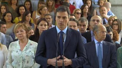 Los partidos, inmersos en las conversaciones para formar Gobierno tras una semana de reuniones que todavía no han desbloqueado la situación, aparcaron por un día sus diferencias. Los mensajes de los dirigentes del PP, del PSOE, de Podemos y de Ciudadanos resaltaban las palabras “unidad” y “colaboración”. Los líderes de la oposición se pusieron a disposición del Gobierno en funciones, igual que ocurrió el pasado noviembre y en marzo, después de los atentados de París y de Bruselas. Y las palabras “libertad, igualdad, fraternidad”, lema de la Revolución y de la República Francesa, resonaron en boca de representantes de distinto color político.