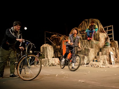 La nueva obra del autor teatral argentino coloca a los repartidores ciclistas en un mundo tan marginal que acaban resultando ajenos