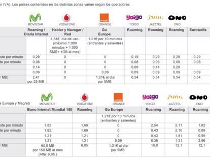 Es un clásico del verano. Y un sufrimiento para los bolsillos de los viajeros que salen fuera de España con su móvil o tableta. Se le conoce como roaming o tarifas de itinerancia, los cargos extra que se cobran cuando un ciudadano realiza o recibe llamadas por su móvil cuando se se encuentra en el extranjero. La UE estableció desde 2007 un precio máximo para evitar los abusos de las operadoras —la eurotarifa— que se actualiza a la baja todos los 1 de julio. Para este año, la rebaja dictada por Bruselas es importante y consecuentemente, las compañías han tenido que adaptar las suyas para no incumplir con la legislación comunitaria, aunque sin grandes alegrías para el consumidor.