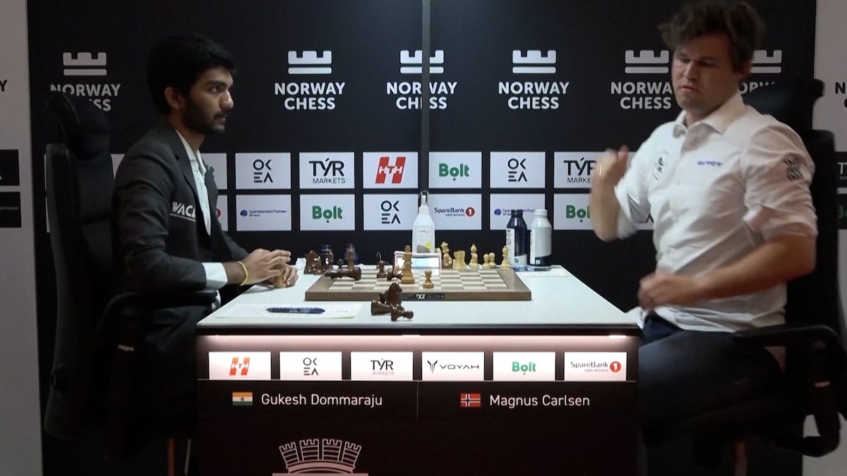 El momento en el que Magnus Carlsen acaba golpeando la mesa tras perder una partida de ajedrez