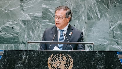 El primer presidente de izquierdas de la Colombia contemporánea defiende la necesidad de “descarbonizar” aceleradamente la economía como única salida posible para atajar la crisis climática que enfrenta el planeta, una idea que ya ha llevado también a otros espacios internacionales, como el Foro Económico Mundial de Davos. En su discurso de este martes, mencionó también su propuesta de cambiar la deuda externa de los países por acciones climáticas concretas, otra vieja obsesión con la que ha arengado en varias ocasiones a otros líderes. La propuso desde su posesión en el cargo, en agosto del 2022, e insistió en ella cuando se dirigió por primera ocasión a la Asamblea General, hace ya dos años.