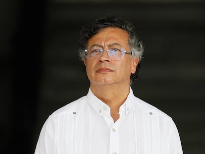 Gustavo Bolívar, uno de los mayores aliados de Gustavo Petro, se ha convertido en un verso suelto para la izquierda colombiana. El saliente director del Departamento de Prosperidad Social es el primer miembro del Pacto Histórico en confirmar públicamente sus aspiraciones presidenciales en las elecciones de 2026. Con ello, ha empujado a la coalición gobernante a comenzar a definir sus directrices para elegir el sucesor de Petro, cuando aún falta un año para la cita electoral. Después de una reunión este lunes con varios dirigentes del movimiento, Bolívar ha dicho que se pactó nombrar a “un solo candidato, elegido en consulta”, una opción que defienden varias voces del progresismo y que es la que más le beneficia al libretista convertido en político.