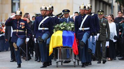 Treinta y cuatro años después de que la Catedral Primada de Colombia acogiera las exequias de Diana Turbay Quintero, la periodista asesinada en 1991 a manos de Los Extraditables de Pablo Escobar, el templo recibió este miércoles las honras fúnebres de su hijo, Miguel Uribe Turbay, senador y precandidato opositor que falleció este lunes, dos meses después del atentado sicarial del que fue víctima en junio. Desde la emblemática Plaza de Bolívar de Bogotá, el cardenal José Luis Rueda presidió una misa fúnebre que contó con la presencia de familiares y amigos del político asesinado, congresistas, líderes políticos, los expresidentes de la República César Gaviria Trujillo, Ernesto Samper y Juan Manuel Santos, y el subsecretario de Estado de Estados Unidos, Christopher Landau.