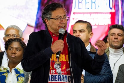 “El Gobierno de Estados Unidos ha decidido escoger como su aliado en Colombia a la mafia”, ha dicho Gustavo Petro al caer la tarde de este viernes, pocas horas después de que el Gobierno de los Estados Unidos lo incluyera en la llamada lista Clinton, alegando vínculos del presidente colombiano con el narcotráfico. “Nosotros no nos arrodillamos, nosotros no vamos a dar un paso atrás”, ha insistido ante los vítores de miles de seguidores que llenaban la plaza de Bolívar, pues los había citado días antes para manifestarse en favor de su propuesta de una Asamblea Constituyente. El encuentro, engalanado con carteles en defensa del “poder constituyente” que ha defendido el líder de izquierdas, terminó por convertirse en una gran plataforma para que respondiera a las acusaciones del Ejecutivo de Donald Trump desde la calle, el lugar en el que se mueve de forma más cómoda y natural.