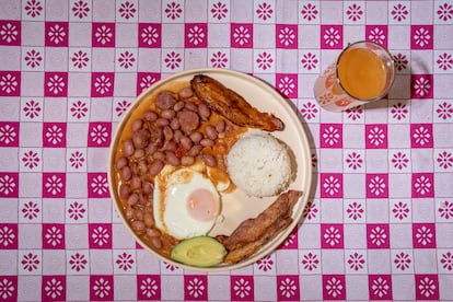 Navarrete y García comparten sus historias durante un almuerzo en Casa B, una fundación en el centro de Bogotá que ha incorporado las recetas al menú de su cocina comunitaria y que alberga una exposición fotógrafica sobre el proceso. Acaban de terminar unos frijoles que tienen un sabor intenso, gracias a una cocción a fuego lento con un caldo de papa criolla, ahuyama y zanahoria. Están mezclados con salchichas rancheras y acompañados, en los costados, por una combinación de sabores salados y dulces: aguacate, plátano maduro, chicharrón, arroz, un huevo en cacerola. El plato se llama Frijoles rancheros y se cocina en memoria de Javier Ramírez, un joven de 21 años que estudiaba una carrera técnica en barbería y computación en Medellín cuando desapareció, el 31 de diciembre de 2019.