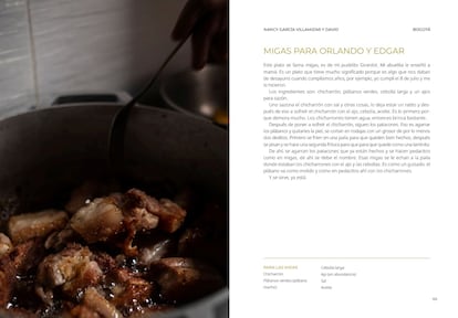 Comenzó, entonces, a trabajar con colectivos de víctimas y diseñó el Recetario para la memoria como un mecanismo para contrarrestar los discursos estigmatizantes. “La comida fue un acierto. Lo íntimo, el día a día, permite que la gente se identifique”, evalúa. “La narrativa ya no es que Juan desapareció tal día a tal hora. Sino que es Juan, que le gusta el flan que le cocina su mamá porque tiene más azúcar de lo normal. Y si a ti te gusta el flan, eso te hace más cercano a Juan”, añade. En el caso de Colombia, el recetario ha incorporado varios cambios: hay casos más antiguos, las recetas se combinan con narraciones personales, hay varios poemas y abundan las fotos de los familiares.