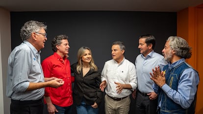 Varios precandidatos presidenciales de la derecha colombiana buscan aún la fórmula para robarse el protagonismo en estas elecciones, sin tener que recurrir al ultraderechista Abelardo De La Espriella. Vicky Dávila, quien a principios del año pasado se perfilaba como la opción de ultraderecha, se vio opacada cuando apareció el abogado defensor en la contienda, y desde entonces ha estado buscando retomar el impulso. Este miércoles ha anunciado que se une a una coalición con otros cinco precandidatos: el exministro Mauricio Cárdenas, el exsenador David Luna, el exgobernador de Antioquia Aníbal Gaviria, el director del partido Nuevo Liberalismo, Juan Manuel Galán, y el exdirector del DANE Juan Daniel Oviedo. Aparte de Galán, se lanzan con el apoyo de firmas. Se medirán en una consulta el próximo 8 de marzo, días de las elecciones legislativas, para definir quién de los seis llegará a las votaciones presidenciales. Arrancan con algo clave en común, tener descartada una alianza con De La Espriella, además de su claro antipetrismo.