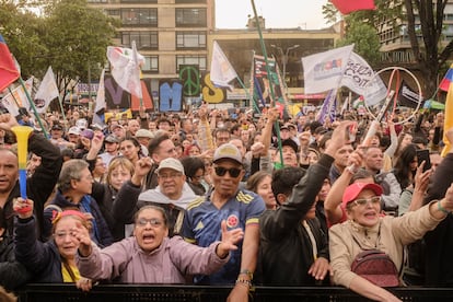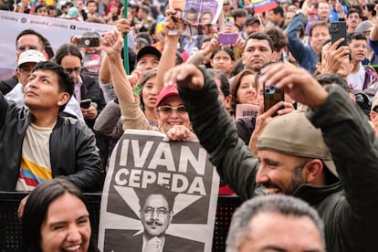 El momento culminante fue cuando Cepeda aseguró que una inhabilitación para la consulta no frustrará su candidatura. “Si se me impide participar, anuncio que el Pacto Histórico [el movimiento del presidente] se retira y se inscribe para la primera vuelta”, exclamó. “Que nuestros adversarios lo oigan claro y fuerte: el partido más grande de Colombia no podrá ser detenido en el camino a un segundo Gobierno progresista”, añadió después. La multitud le respondía con aplausos, ovaciones, cánticos celebratorios. “Iván, amigo, el pueblo está contigo”. “¡Resistencia! ¡Resistencia! ¡Resistencia!”.