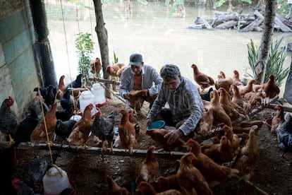La angustia de las deudas también se vive en la casa de madera y zinc que habitan Gelbel Cárdenas y Aura Ramos. En octubre, la pareja contrajo un crédito de un millón de pesos (1.100 dólares) y sumó ahorros de 400.000 pesos (otros 100 dólares) para comprar 200 gallinas. Al cabo de cuatro meses, tendrían unos 180 huevos diarios que les darían un ingreso de 180.000 pesos (23 dólares). Pero la humedad, la lluvia, “la frialdad”, mató a la mitad de los animales. Las 100 sobrevivientes se han mudado del corral a la casa de la pareja. Brincan al ritmo del vallenato, que supuestamente las mantiene animadas. “Ruego que sobrevivan para pagar la deuda, que tiene una cuota mensual de 130.000 pesos”, dice Aura.