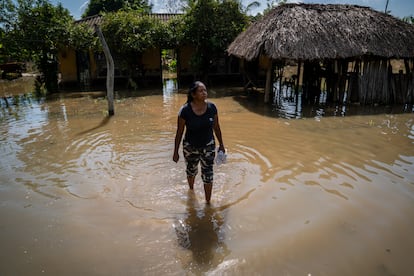 La campesina María Isabel Méndez amaneció los últimos cinco días en una casa inundada. Al despertar, veía el agua que cubría las patas de su cama, las paredes ennegrecidas de la habitación en la que nació hace 47 años, y la silla de ruedas que su tío usó hasta que falleció hace pocas semanas. Cada mañana decidió quedarse: no tenía otro sitio a donde ir y pensó que el río Sinú, desbordado desde el sábado por lluvias torrenciales, bajaría. Pero el miércoles resolvió que ya era suficiente. El agua no paraba de subir y María Isabel temía que las bacterias que se acumulaban a su alrededor le hicieran daño o, peor aún, que la casa colapsara con ella adentro. Se mudó a un refugio de plástico, madera y palma en la entrada de su finca.