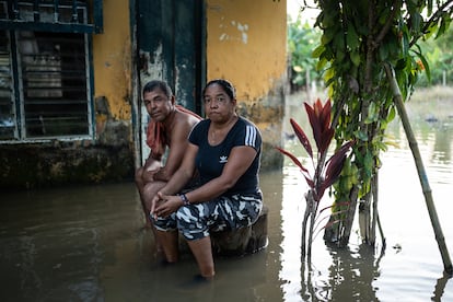 Gelber y Aura tienen posturas distintas sobre la posibilidad de mudarse. Ella dice que “está aburrida” de las inundaciones en invierno, que le frustra que ahora se sume una en febrero y que esta es la peor de todas las crecidas que ha tenido el río. “Quiero que el Gobierno nos ayude a arreglar la casa o a salir de aquí”, comenta. Gelbel la mira en silencio y, luego de unos segundos, acota: “O que nos dejen acá, pero con una buena entrada, más alta”. Se le suma su hermano, que enfatiza que siempre han vivido ahí. Aura se ríe y les da la razón. “Lo que hay que hacer es traer 70 volquetas de tierra”, afirma. Los hombres insisten en su cariño a la tierra. Ella vuelve a darles la razón: “Bueno, aquí nos quedamos. No hay problema”.