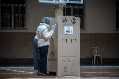 Una casilla de votación en el colegio San Bartolomé, en Bogotá, el 26 de octubre de 2025.Diego Cuevas