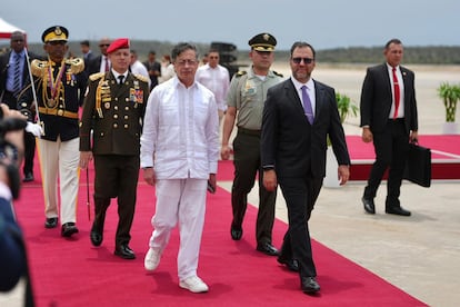 La agenda oficial sitúa la cooperación en seguridad como prioridad absoluta. Buena parte de los grupos criminales que operan a un lado y otro de la frontera se mueven con la misma soltura en territorio colombiano que en el venezolano, y la zona limítrofe del Catatumbo es desde hace más de un año un campo de batalla en llamas. Esa vasta extensión de selva, montaña y ríos pegada a Venezuela se ha convertido en el epicentro de una guerra fratricida entre dos grupos armados que se disputan un territorio estratégico y rico en minerales, carbón y petróleo. En poco más de un año, desde que se agravó el conflicto, sus acciones violentas han desplazado a cerca de 100.000 personas, tras haber sembrado el terror en comunidades enteras, incapaces ya de moverse por miedo a los drones o a las minas antipersona sembradas en los caminos.