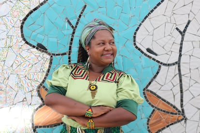 Tenía 28 años cuando, el 11 de marzo del 2000, la vida se les partió en dos a su familia y las otras 244 que habitaban la población, a dos horas de Cartagena. De noche llegaron tres camiones con 60 paramilitares. “Hubo masacres selectivas, colectivas, desplazamientos, muertes de líderes y muchas mujeres fuimos abusadas sexualmente. Éramos botín de guerra, una forma de castigar a los hombres. Nos tocó salir con lo que teníamos encima, dejando todo este legado de nuestros ancestros y lo construido desde 1882. Un solo grupo de hombres rompió la estructura organizativa que teníamos, arrasaron nuestra historia en un solo día”.