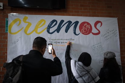 En los casi dos centenares de creyentes que esperaban este martes al candidato Iván Cepeda en Bogotá podían verse todos los rostros de la diversidad religiosa de Colombia. Al caer la tarde, sentados en el auditorio de un colegio en el barrio de Teusaquillo, a cinco días de las elecciones para elegir senadores y representantes a la Cámara, decenas de musulmanes, de católicos, de cristianos de diferentes denominaciones, de indígenas y de agnósticos se dieron cita en un evento convocado por el colectivo “Con Iván creemos”, un espacio ecuménico que busca organizar una contraofensiva religiosa de la izquierda, pues en ese sector de la sociedad han tenido un papel protagónico los representantes de las derechas.