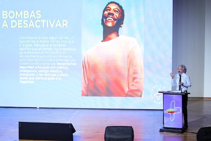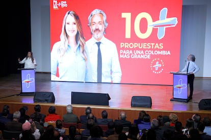 La candidata uribista Paloma Valencia escogió una figura bélica para presentar este lunes el plan su Gobierno: las bombas. Su Plan 10, como lo ha llamado, es “para decirles cuáles son las cinco bombas que tenemos que desactivar y cuáles son las cinco transformaciones que pueden ayudarnos a construir esa Colombia más grande”. Lo presentó este lunes en la Universidad Uniminuto de Bogotá. A su lado estaba Juan Daniel Oviedo, su fórmula vicepresidencial, quien explicó que este plan de gobierno refleja la visión de los nueve precandidatos que se midieron el pasado 8 de marzo en una consulta de la derecha. “Para mí, trae una dimensión muy emocional: desactivando una bomba de tiempo, no nos llevamos llevar por las pasiones”, dijo el candidato a la vicepresidencia “Estamos sumando, estamos dejando de lado que sumar entre distintos es ser incoherente”, añadió el aspirante ubicado más al centro. Sin embargo, el programa retoma el lenguaje del presidente de derechas más popular, Álvaro Uribe, quien decía que su Gobierno era uno de “mano firme y corazón grande”. El programa de Oviedo y Valencia tiene entre sus tres grandes apuestas la “firmeza para estabilizar” y el “corazón para transformar ”.