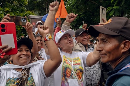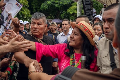 Ahora es la fórmula del candidato que encabeza las encuestas para llegar a la Casa de Nariño y se suma al discurso antiestablecimiento que ha caracterizado a la izquierda a la que los dos pertenecen. “Los medios masivos de comunicación han dicho que este presidente no ha hecho nada y que ha dejado más violencia”, dice la senadora, en medio de arengas, minutos antes de dar una cortísima entrevista a EL PAÍS. Tres horas antes, en Cali, la tercera ciudad de Colombia, hubo un atentado terrorista fallido contra el Batallón Pichincha. Horas después, el terrorismo se extendió hasta Palmira, una ciudad contigua. Y este sábado, las disidencias atacaron a bombazos un bus en la vía Panamericana, en el departamento natal de Quilcué.