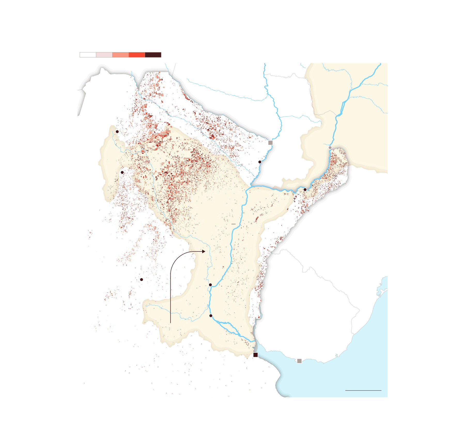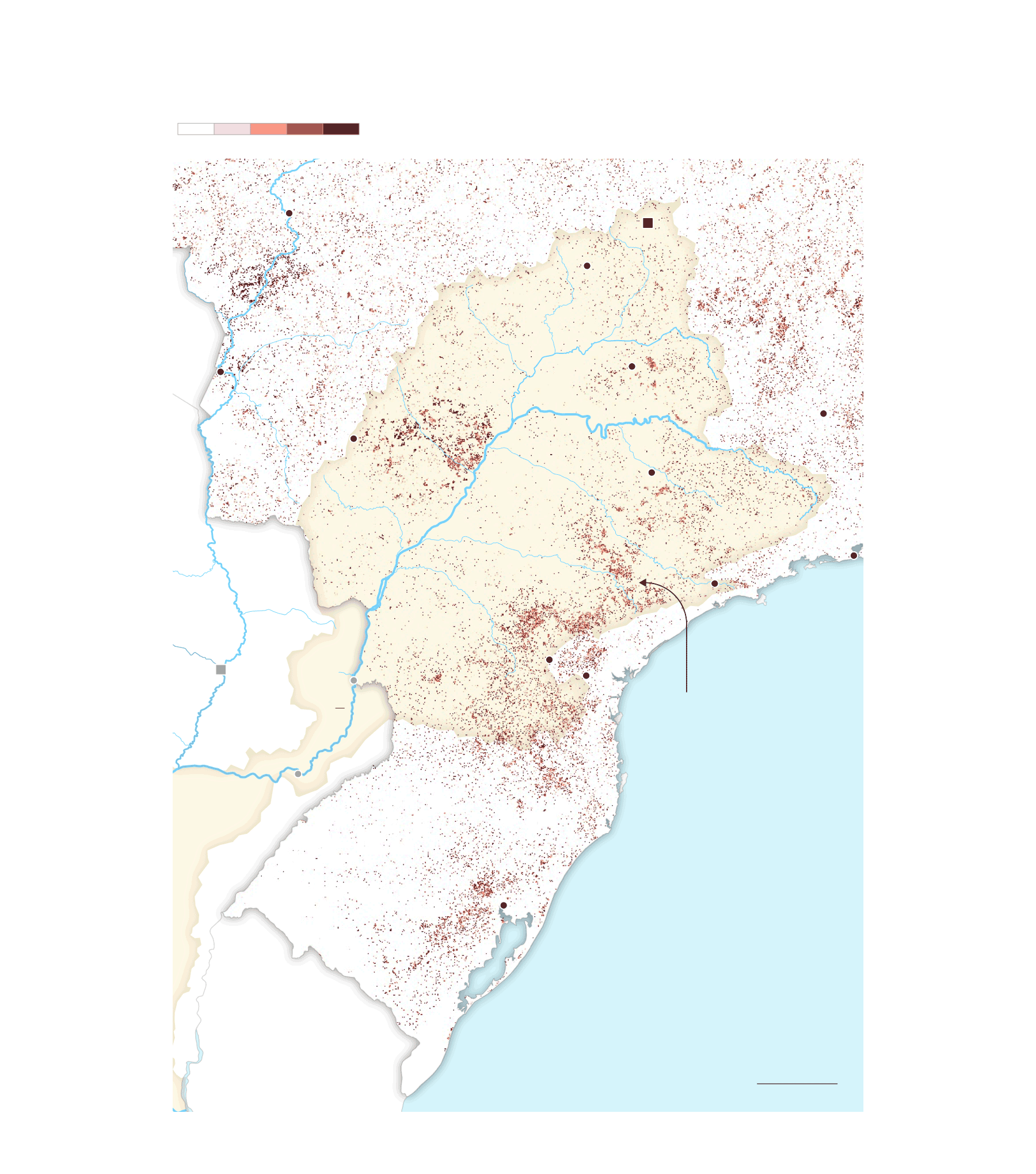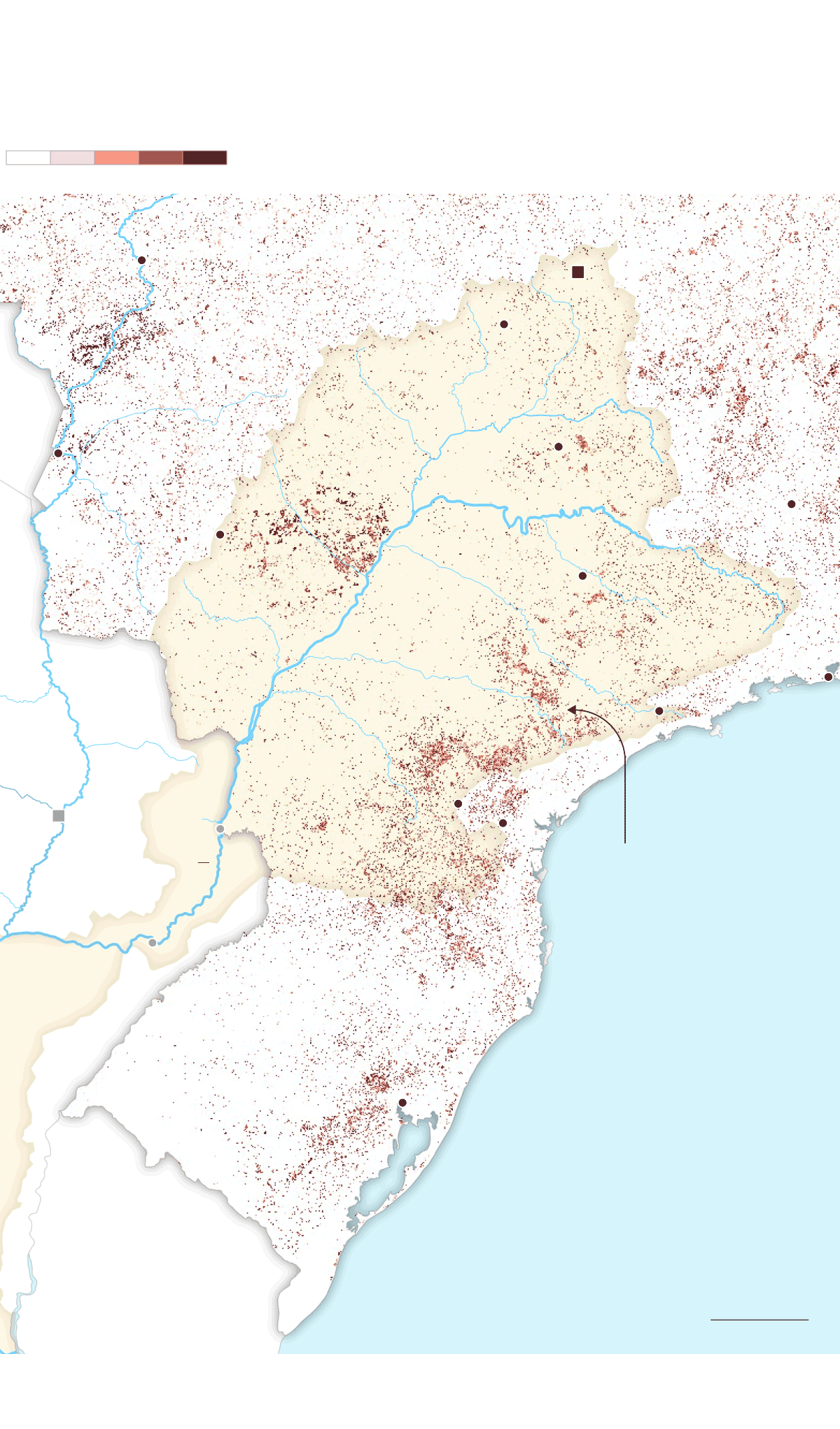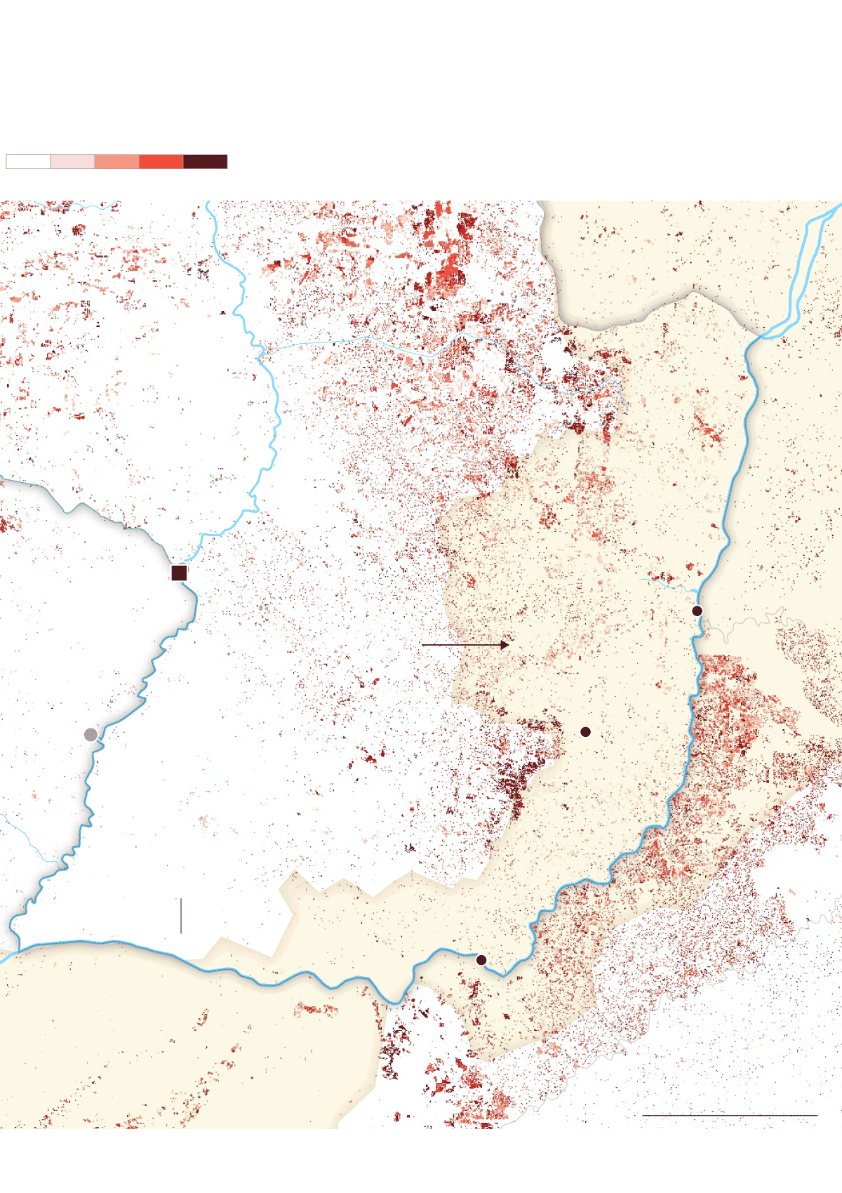 La mancha de la frontera agropecuaria en la cuenca ha alcanzado niveles históricos. Comenzó a expandirse alrededor de 1960 y sigue creciendo sin parar. Hoy es un inmenso espacio de más de 47 millones de hectáreas de agricultura extensiva y al menos 90 millones de hectáreas de pastura de ganado vacuno que ocupan partes de 11 provincias argentinas, siete estados brasileños y ocho departamentos paraguayos. La mayor pérdida de cobertura forestal fue antes de 2001, pero después de ese año, la deforestación continuó imperturbable pese a los discursos y a las políticas globales para frenarla y para disminuir la emisión de gases de efecto invernadero que aumentan la temperatura del planeta.