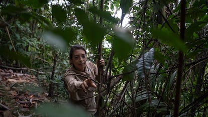 Aunque lleva años subiendo con los demás reconocedores de especie al terreno, Hernández no deja de sorprenderse. Se ilusiona como una niña cuando encuentra semillas mordidas por los animales o cuando encuentra plántulas cada vez más firmes en el suelo. A cada duda, Gómez responde como una enciclopedia andante: “Este fono negro no tiene semillas pero es muy valioso; la cáscara del costillo rosado se usaba para curar el paludismo; el ahumado negro está en riesgo, toca cuidarlo bien...”. Hernández anota mentalmente cada uno de los detalles nuevos. “Cuando ves plantines como estos ya no pisas el suelo igual, porque sabes que está el bosque en crecimiento. Si la sociedad tuviera estos ojos, también miraría diferente la Amazonia”, dice. “Protegerla será importante no solo para mantener este enorme sumidero de carbono; sino para cuidar este banco de alimentos y medicinas de la que sabemos aún muy poquito”.