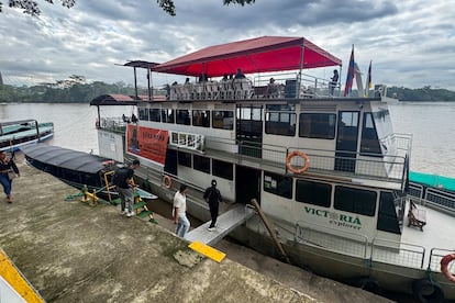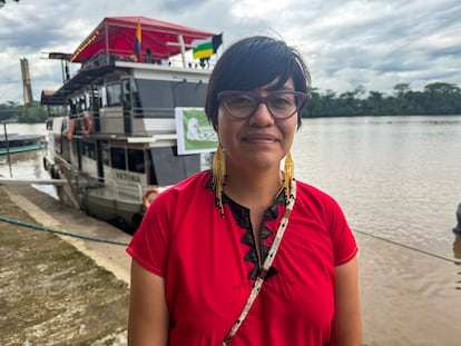 La mirada de una mujer cargando una anaconda viva en sus manos se imponía la mañana del jueves, 16 de octubre, en el puerto de la ciudad Francisco de Orellana, más conocida como El Coca, en la Amazonia ecuatoriana. El cartel, que tenía esta imagen, colgaba de una embarcación de dos pisos, parqueada a la espera de sus pasajeros. A un lado, las letras negras en fondo naranja resaltaban no solo por su color, sino por lo que anunciaban: “Yaku Mamá, flotilla amazónica: de los Andes a la Amazonia. Rumbo a Belém a la COP30”.
