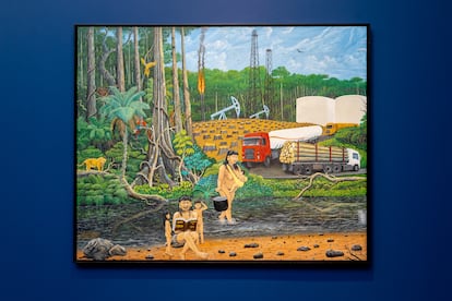 Se decía que el jesuita tenía el poder de amansar a las fieras con la palabra de dios. El conjunto escultórico está rodeado de cascotes y de alcantarillas obstruidas. Las calles de Belém -del centro, no del extrarradio-, se han seguido reparando y preparando hasta hace poco para la llegada de los apóstoles de la lucha contra el cambio climático que irrumpirán en la ciudad en los próximos días para la cumbre del clima de la COP30. El futuro del mundo entrará en el debate que enfrenta el modelo comercial agresivo y la sostenibilidad. Quizás haya que invocar a los dioses en esa batalla. Mientras tanto, en la Bienal de arte, otro tipo de revuelta tiene lugar. Una revuelta hacia los orígenes.