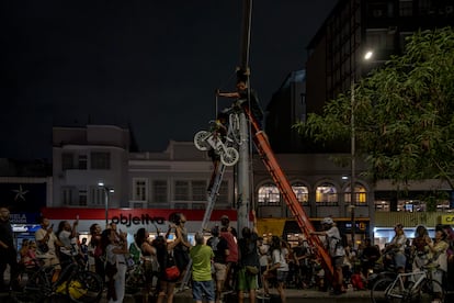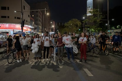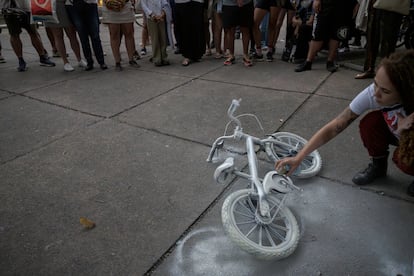 La marcha en memoria de Manu y Chico congregó a cientos de personas, que cortaron la avenida donde ocurrió el accidente en silencio y portaron pancartas con lemas como “Ayuntamiento negligente, Ayuntamiento asesino”. La protesta finalizó con un ritual habitual entre los ciclistas de todo el mundo cuando suceden estas tragedias: la instalación de una ghost bike, en este caso dos bicis pintadas de blanco encaramadas a un poste en memoria de las víctimas. Entre sus impulsoras estaba Hellen Balbinotti, profesora y activista de los pedales en el grupo Massa Crítica RJ. Es el tercer acto de este tipo al que acude en menos de un año. Las muertes de ciclistas en el asfalto no son casos aislados. Entre las súplicas para lograr una ciudad más amable, no le faltó tiempo para criticar la respuesta de la alcaldía ante el accidente.